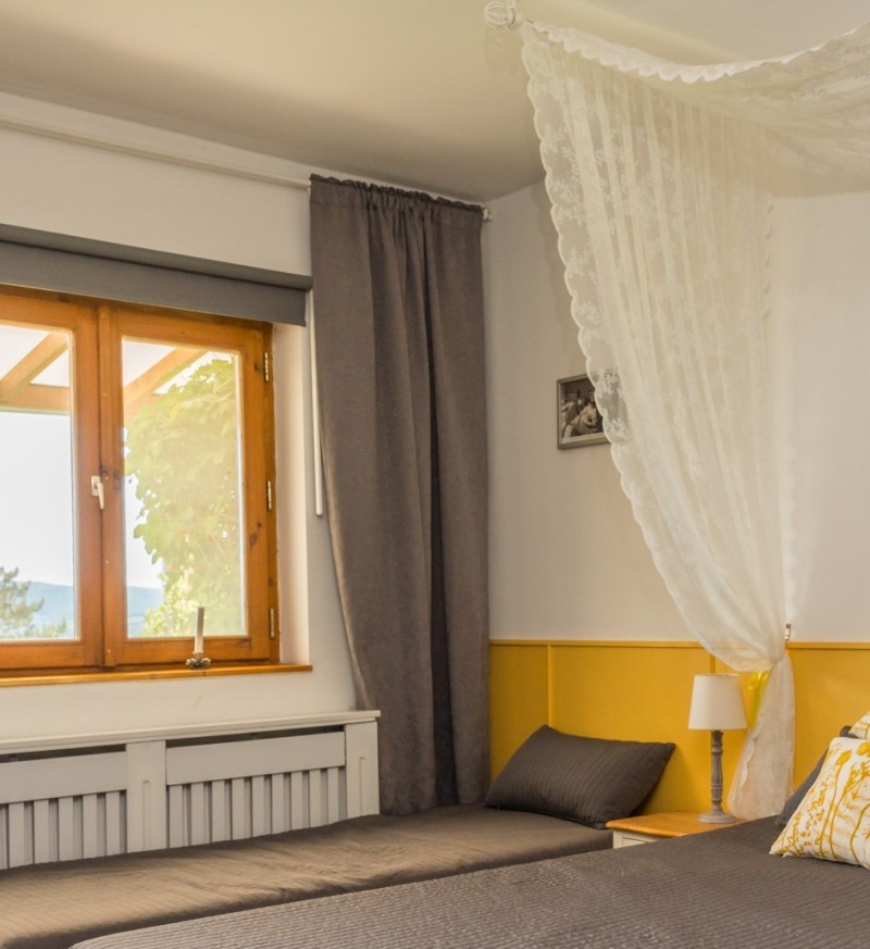 Háromszintes vendégházunk nagy előnye, hogy míg esténként az alsó szinten, a jakuzziban és a szaunában kikapcsolódnak a szülők, addig 2 szinttel feljebb békésen alhatnak a gyerekek.
