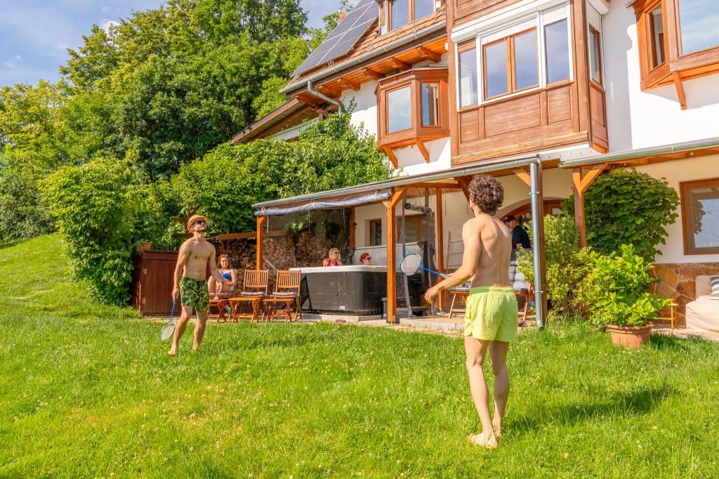 A jakuzzink és a szaunánk egész évben, lefedhető-fűthető medencénk áprilistól novemberig (az időjárástól függő hőfokkal) vár benneteket. Vendégházunkban könnyedén lelassulhattok: nem kell semmit tervezni, programokat keresgélni!