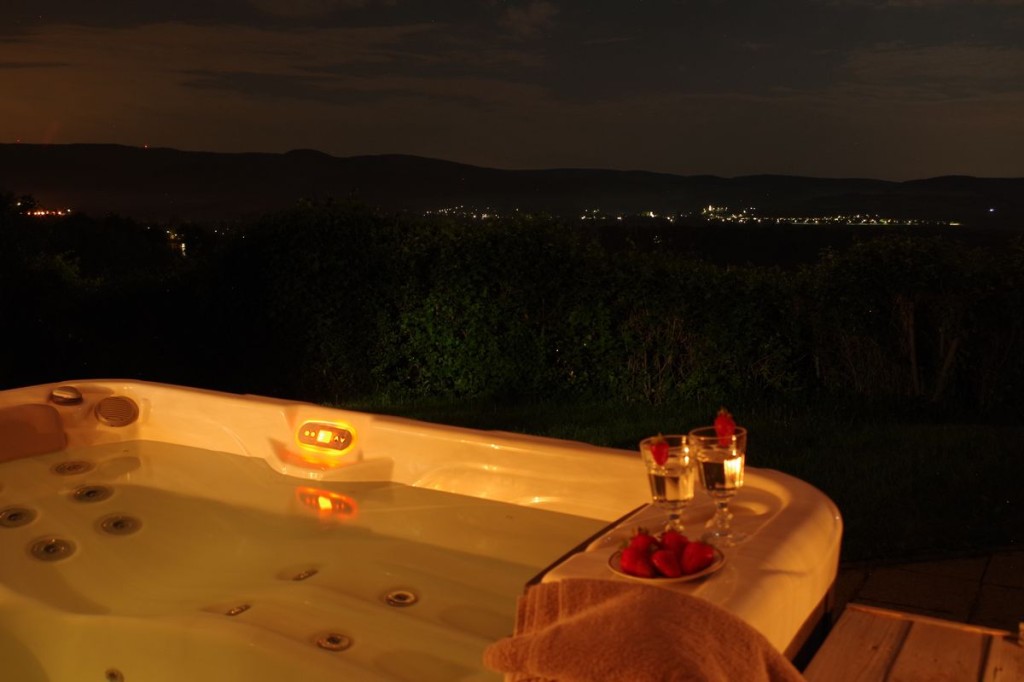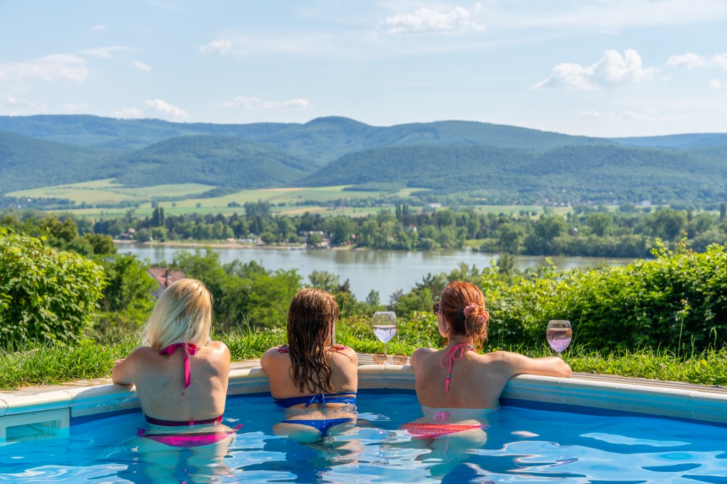 Az 5 személyes jakuzzinkból egész évben csodálhatjátok a Dunát, a Pilist, a Börzsönyt. Egy fedett pergola alatt vár titeket, melynek áttetsző oldalai leengedhetőek így akár hóesésben is használhatjátok. És persze az esőtől, széltől is védve vagytok, így egész évben bármikor használható.